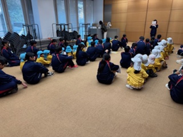昨年に引き続き、藤森中学校の2年生と深草保育園の5歳児がエコロジーセンターで交流をさせていただきました。藤森中学校の2年生にも深草保育園を卒園した子が3名いて懐かしい再会となりました♪みんなおっきくなってたなぁ。 エコロジーセンター到着後、中学生と一緒にみんなで『エビカニクス』の体操をし、2班に分かれました。そこからは中学生がプラスチックごみの削減やフードロスについての紙芝居を読んでくれたり、ビニール袋の代わりになる風呂敷の使い方や結び方を教えてくれたり、伝承遊びを一緒になってしてくれたりと、たくさんの交流を持つことができました。こどもたちも時間の経過とともに緊張がほぐれ、お兄さんお姉さんとの距離も近くなり、多くの気づきや発見がある楽しい時間になりました☆ 今日を迎えるにあたり、お忙しい中さまざまな準備をしていただいた藤森中学校の皆様、そしてエコロジーセンターの関係者の皆様、ありがとうございました。 |