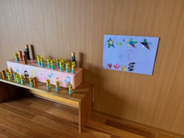 今日は七夕ですね。深草保育園、第二深草保育園でも七夕集会を行ないました。 先生たちが七夕のお話をブラックライトを使ったパネルシアターで子どもたちに伝えてくれました。 子どもたちも興味津々で見てくれていました。他にも七夕のうたを歌ったり、写真を撮ったりと楽しい時間を過ごせました♪みんなの願い事がかなうといいね♪ 給食、おやつも七夕にちなんだ行事食を給食の先生が作ってくれました☆ |
